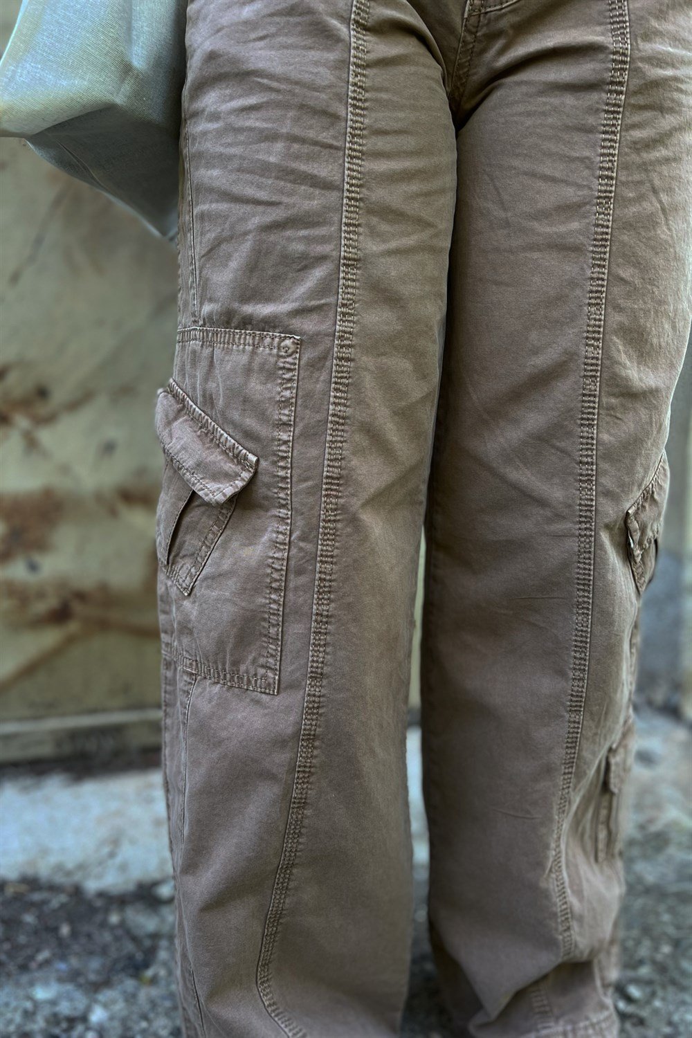 Our trousers model is a cargo model and consists of cream colour with pocket details on the sides. It is a model that you can combine as you wish.