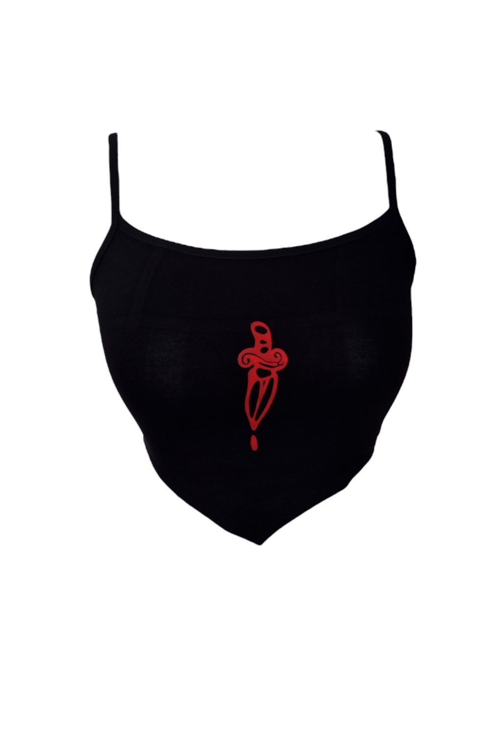 Our blouse model is our own production with special digital printing, thin straps and black colour.